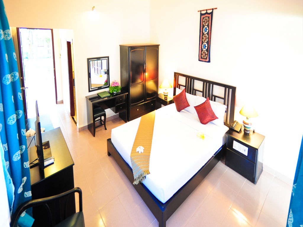 Rooms come with red-wood interiors, a balcony/terrace and air conditioning. Amenities in the rooms include a flat-screen TV, night stand and wardrobes. Rooms feature views of the garden or sea. Some units also come with a seating area. Bathrooms come with shower facilities and provide free toiletries. A hairdryer and slippers are provided.